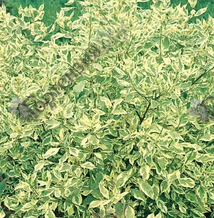 Пряморослый  кустарник высотой 80-140 см, шириной 100-170 см. Листья длиной 12-15 см, на молодом приросте зелёные с золотисто-жёлтой каймой, на старых побегах - зелёные с кремовой каймой. Побеги зимой пурпурно-красные. . Цветет кремовыми, мелкими цветками, собранными в щиток. Плоды белые некрупные, немногочисленные. Место солнечное или полутенистое, почва влажная, кислая. Сорт зимостойкий, до -34°С.