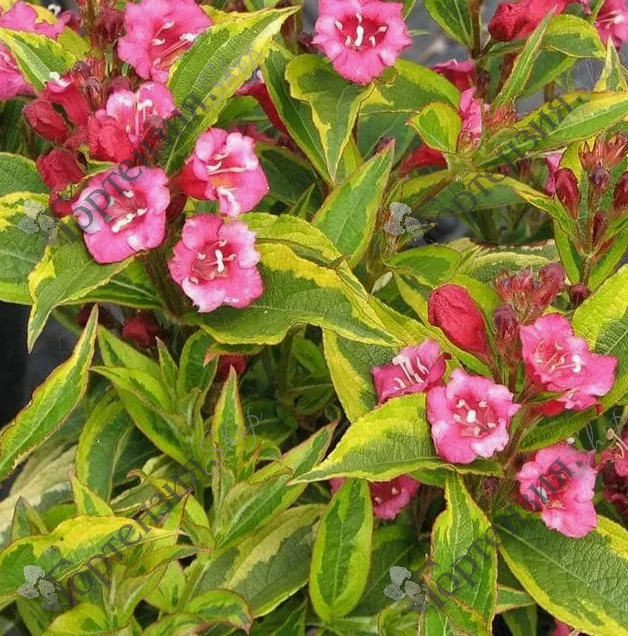 Вейгела цветущая Бригелла (Weigela florida 'Brigela' )  декоративный  кустарник с  раскидистой кроной. Листья зеленые с желтым краями. Цветки розовые воронкообразные 3см. Образуют соцветия  по 3 – 4 штуки в каждом. Цветет два раза за сезон — обильно в июне-июле, повторно в августе-сентябре. Почвы предпочитает плодородные, дренированные. Морозостойкость -29С. Используется в одиночных и групповых посадках,