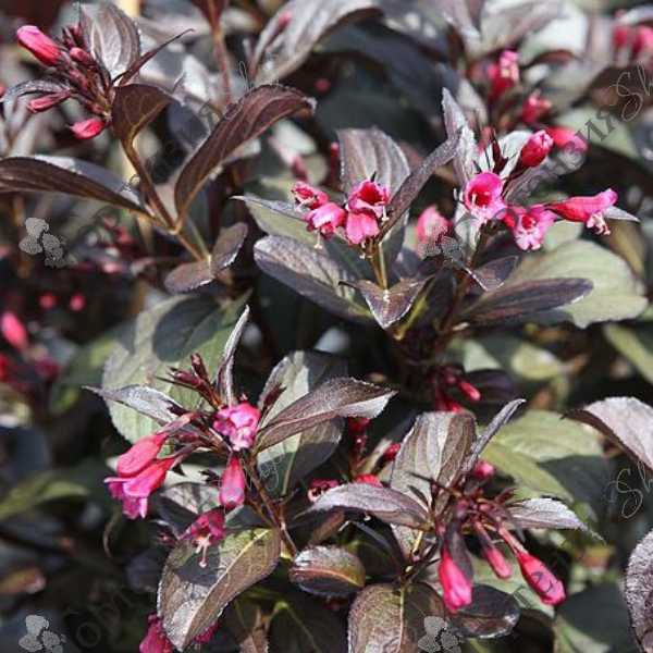 Вейгела Виктория (Weigela florida 'Victoria' ) - красивоцветущий кустарник. Высота и диаметр кроны около 1,5 м. Листья темно-зеленый с темно бордовым почти фиолетовым оттенком. Цветки вейгелы появляются в июне-июле, темно-розовые,  3-4 см. Вейгела отлично дополняет композиции из хвойных растений, хорошо смотрится в групповых посадках и одиночных. Почвы предпочитает плодородные, дренированные. Морозостойкость -29С.