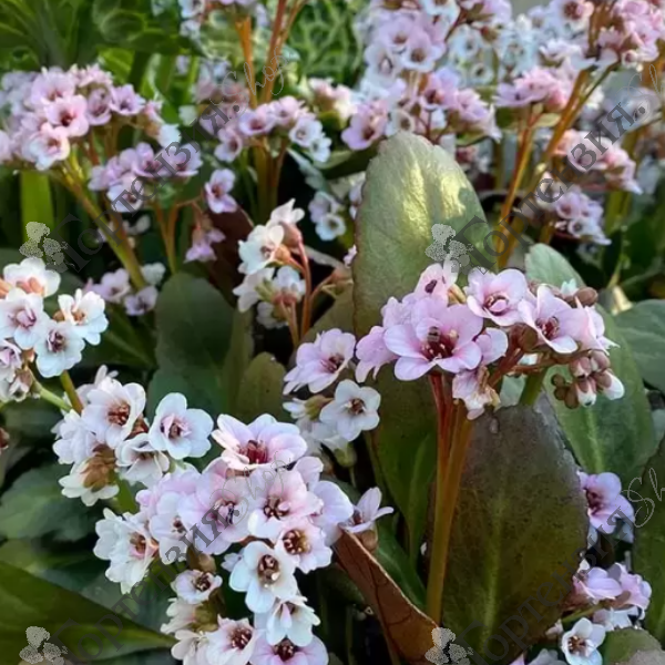 Бадан гибридный Драгонфлай Энджел Кисс- многолетнее травянистое растение с округлыми плотными тёмно-зелёными листьями, переходящими затем в белые колокольчатые полу махровые цветки с нежно розовыми прожилками в центре. Почвы плодородные. Морозостойкость -34С. Прекрасно будет смотреться в сочетании с кустарниками или другими многолетними растениями.