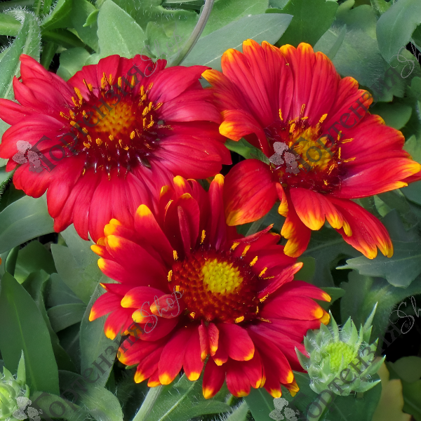 Гайллардия 'Аризона Ред Шадейс' (Gaillardia grandiflora 'Arizona Red Shades'(Blanket Flower)) - компактный куст, высотой до 30 см, листья зеленые лопатчатые, цветки крупные, кирпично красного цвета, края лепестков чуть светлее, центр красный. Цветение раннее с июня по сентябрь. Почвы предпочитает плодородные без застоя воды. Используется для одиночной и групповой посадки в миксбордерах и цветниках, подходит для срезки.