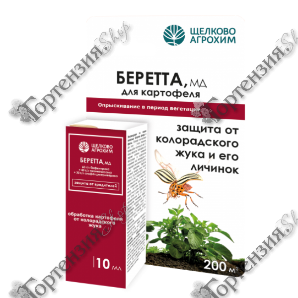 Инсектицид Беретта используется для защиты от вредителей - колорадского жука и его личинок. Предназначен для обработки картофеля. Представляет собой концентрат. Раствор готовят в соответствии с инструкцией, размещенной на обороте упаковки строго перед применением. Для распыления подходят ручные и ранцевые устройства.