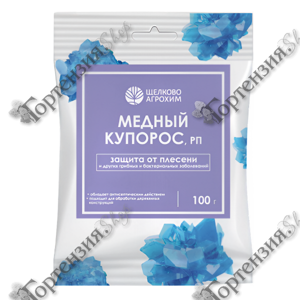 Медный купорос , минеральный фунгицид, Незаменимое средство для профилактики грибковых заболеваний растений, а также для обработки помещений. Обладает высокими бактерицидными свойствами. Является источником меди для растений. Для профилактики распространения болезней растений; - в защитной покраске стволов деревьев для борьбы с зимующими вредителями; - в качестве медно-серного удобрения; - в строительстве и для обработки помещений. Помогает в качестве профилактики против парши, пятнистостей, монилиоза, коккомикоза, филлостикоза, хлороза, экзантемы, ржавчины, гнилей, курчавости листьев, аскохитоза, мучнистых рос и другихзаболеваний; · восполняет недостаток меди в почве; · подавляет активность мхов; · блокирует развитие и прорастание грибных спор, плесени; · применяется для обработки древесины и других конструкций - для нейтрализации последствий протечек, ликвидации пятен ржавчины и для предотвращения развития плесени и гниения. · для удаления выделений солей («высолов») с кирпичных, бетонных и оштукатуренных поверхностей.